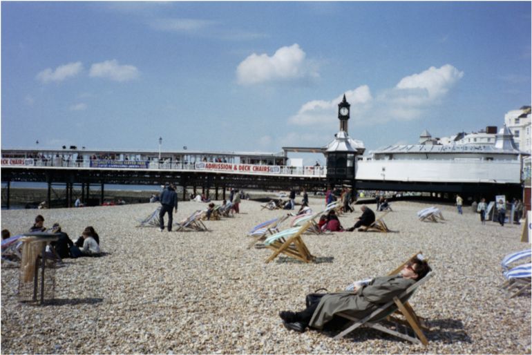 May 7, 2001 Brighton Sun Bather on £1.25 per day deck chair.