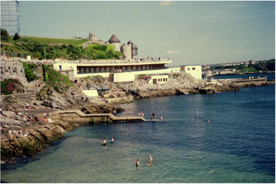 Plymouth 'beach' - May 30. Some braved the cold water and concrete 'sandy beach'.
