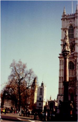 Towers from Right to Left: Westminster Abbey, St Margaret's Church, Big Ben, & London Eye over the River.
