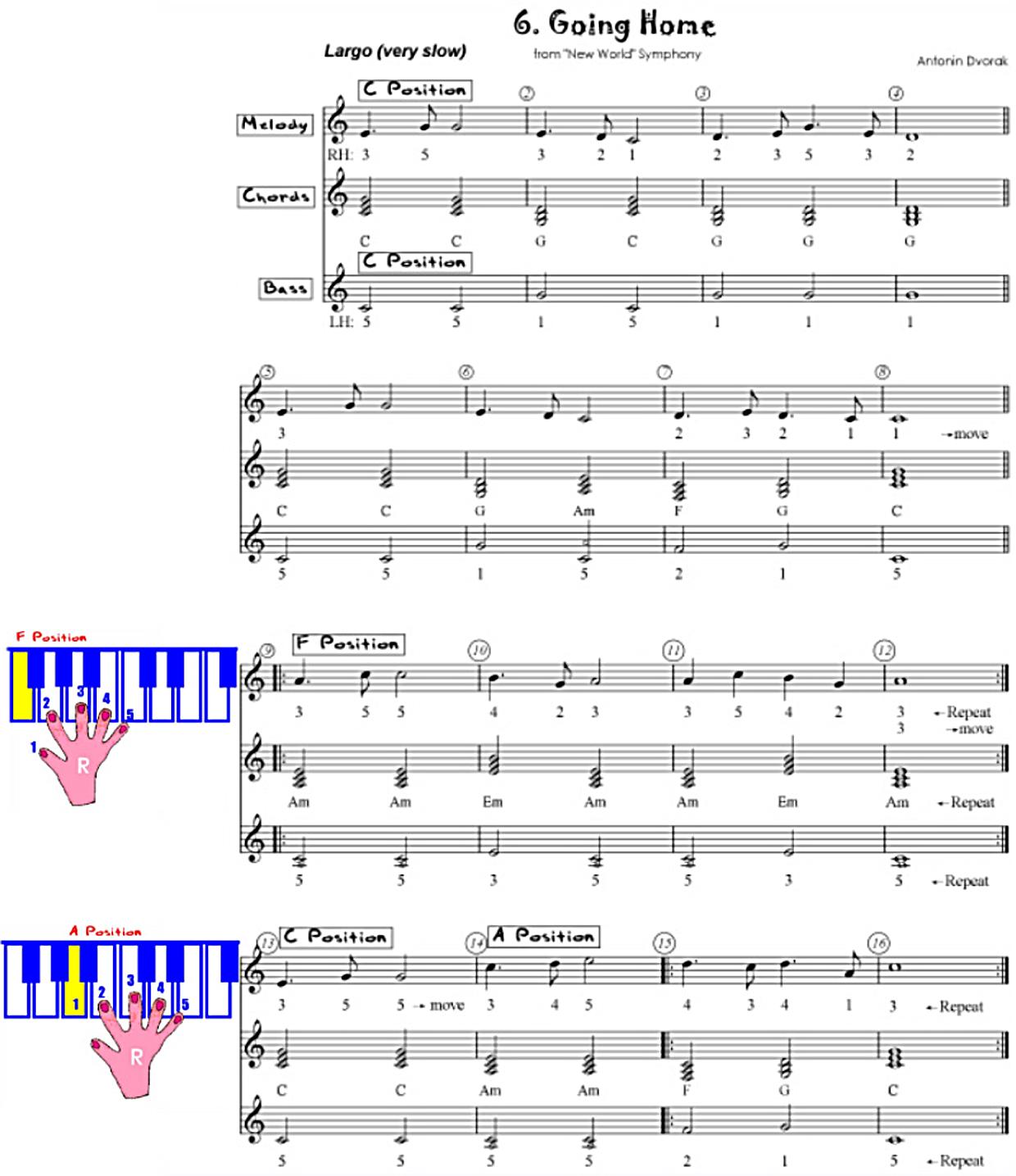 Here is another famous piece. This time you will have to move your Right Hand to different positions as you play.