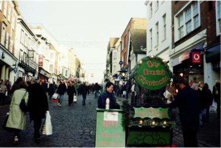 Christmas shoppers enjoy hot roasted Chestnuts.