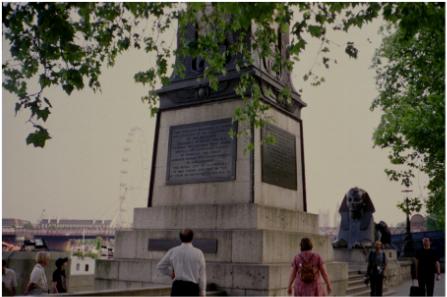 Ancient Egyptian monument on right.